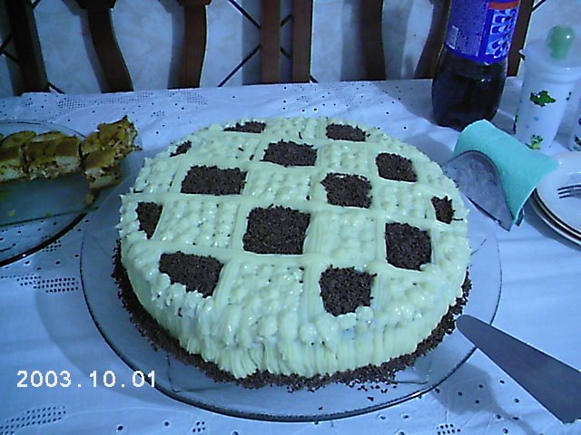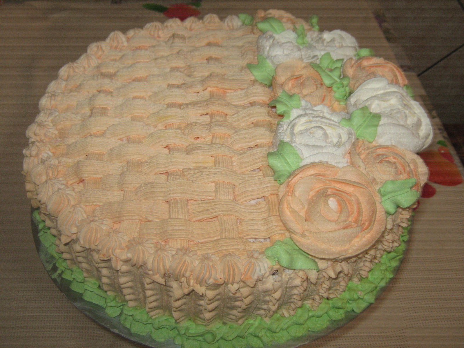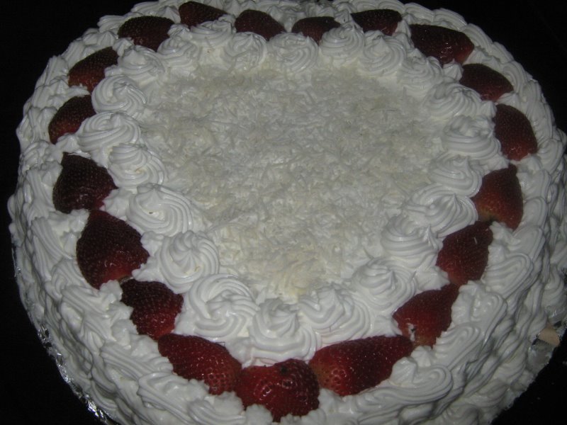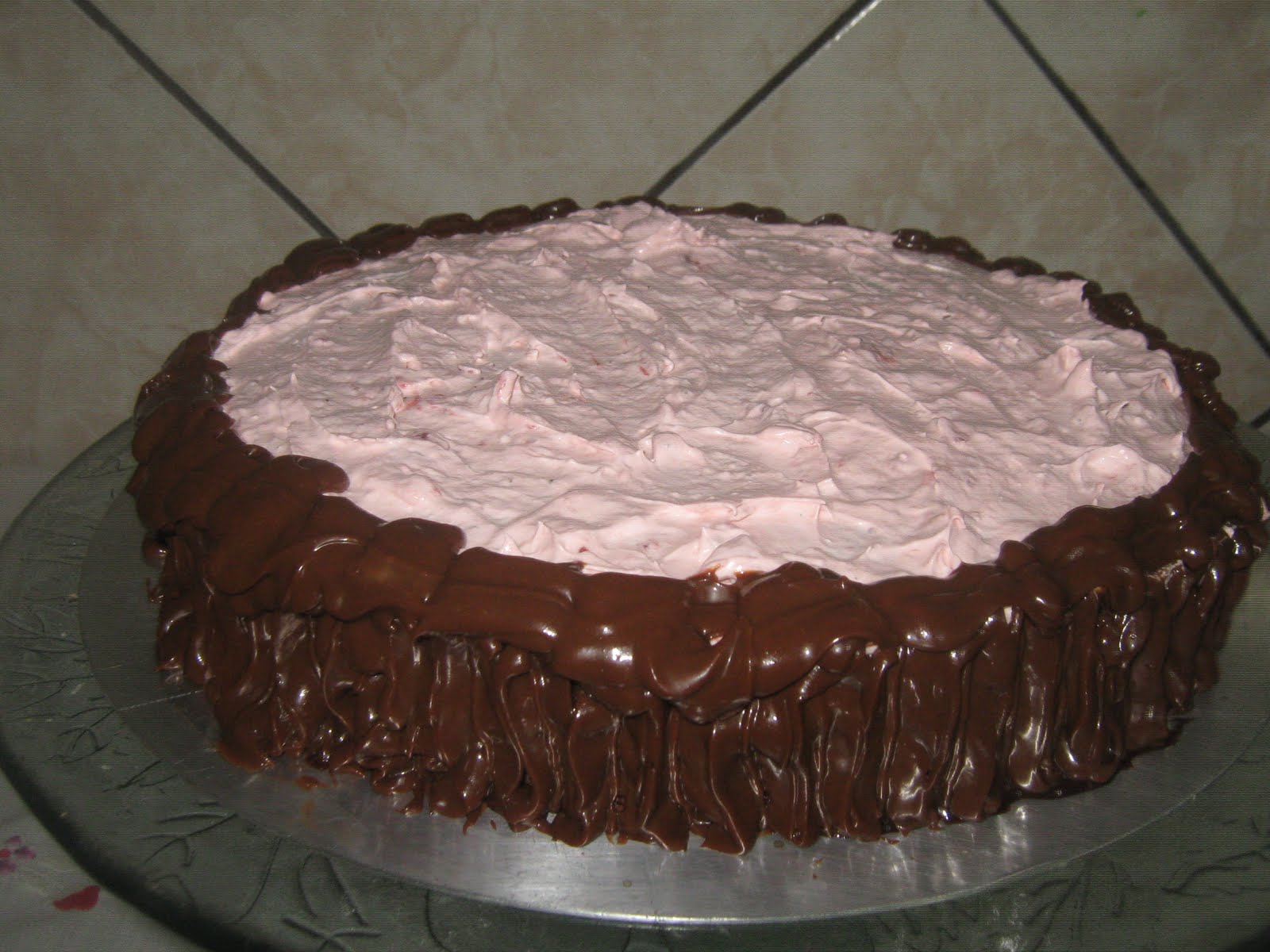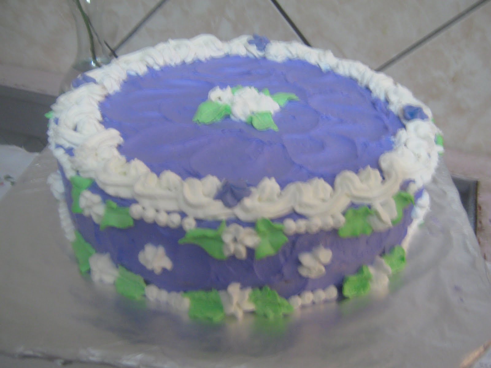 Bolo massa de chocolate com recheio de doce de leite com coco e cobertura de pasta americana e flores da mesma. R$ 35,00 o quilo.